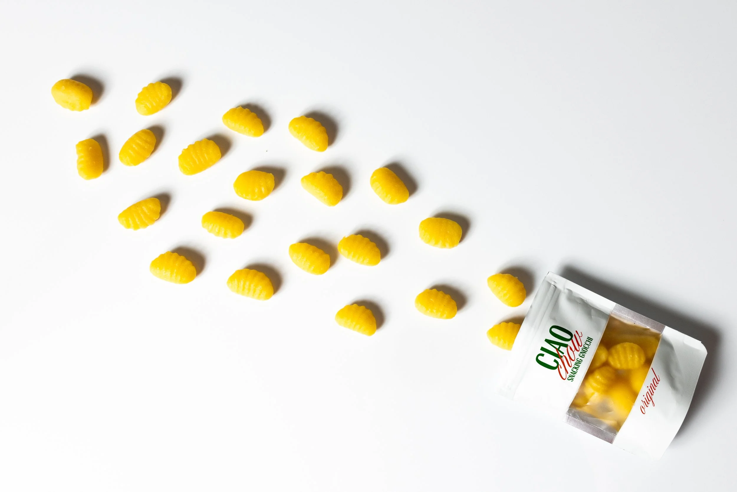 Crisps are overrated. So much salt and fat? The residue on your fingers? Please. We took the trusty potato and used it as a canvas for Italian culinary brilliance. Our snack is low in fat, free from all major allergens, made from plant-based ingredients, and keeps your gorgeous fingers clean. saluti!